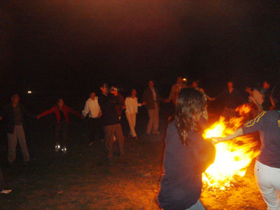 蒙古人自古就崇拜火,在遙遠的古代部落社會,認為火在開天辟地中起了無與倫比的作用。大地是馬蹄踏出的火星,燃燒灰塵覆蓋大水變成的;云彩是馬蹄燃起的大火,燒烤大水使水蒸氣漂浮升起形成的;星星是馬蹄濺起的火星,升入高空才永遠發亮的……所以在獵場或戰場上大獲勝利時,大家都圍著篝火,慶祝這次的勝利,祝福下次的成功。幾千年過去了,草原游牧民族還保留著這古老的慶賀方式。 如今在草原景區,都有草原篝火晚會。